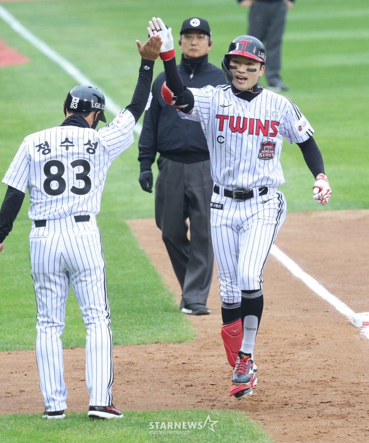 스포츠야구[포토] 박해민 '금의환향 점프'발행 : 2025.10.26 ・ 15:42잠실=김진경 대기자2025 KBO리그 한국시리즈 1차전 LG 트윈스 대 한화 이글스전이 26일 잠실야구장에서 열렸다.LG 박해민이 5회말 무사에서 한화 선발 문동주를 상대로 우월 1점 홈런을 날리고 홈인하고 있다.<저작권자 © 스타뉴스, 무단전재 및 재배포 금지>프로야구KBO폰세김경문_감독노시환하주석추천 기사김진경 대기자기자홈좋아요 스포츠-야구의 인기 급상승 뉴스스포츠-야구의 최신 뉴스