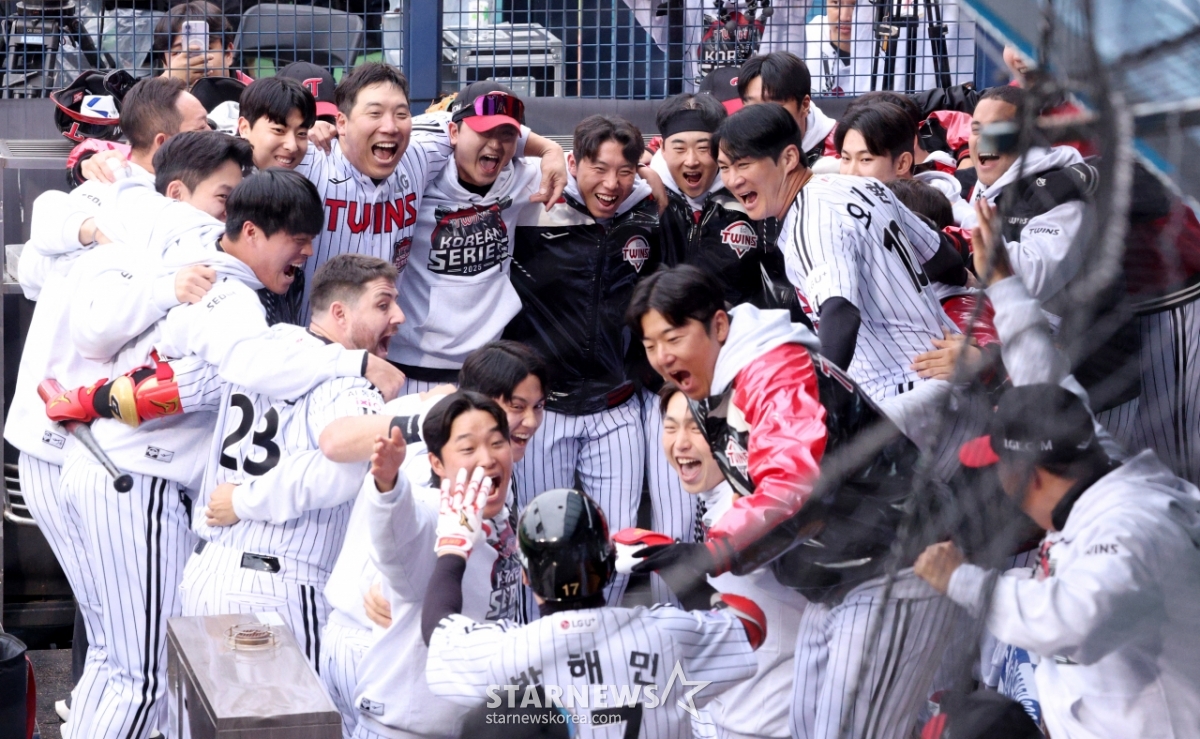 스포츠야구[포토] 오지환 '캡틴 박해민을 맞이하라'발행 : 2025.10.26 ・ 15:49잠실=김진경 대기자2025 KBO리그 한국시리즈 1차전 LG 트윈스 대 한화 이글스전이 26일 잠실야구장에서 열렸다.LG 박해민이 5회말 무사에서 한화 선발 문동주를 상대로 우월 1점 홈런을 날리고 홈인한 후 동료들과 기뻐하고 있다.<저작권자 © 스타뉴스, 무단전재 및 재배포 금지>프로야구KBO폰세김경문_감독노시환하주석추천 기사김진경 대기자기자홈좋아요 스포츠-야구의 인기 급상승 뉴스스포츠-야구의 최신 뉴스