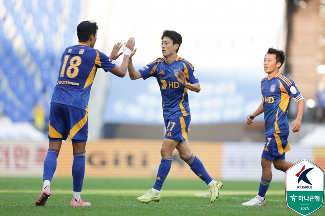 울산은 26일 울산문수경기장에서 열린 대구FC와 '하나은행 K리그1 2025' 34라운드 홈 경기서 1-1로 비겼다. 전반 막판 실점한 뒤 후반 내내 득점하지 못하며 끌려갔지만, 경기 막판 극적인 동점골로 기사회생했다.
