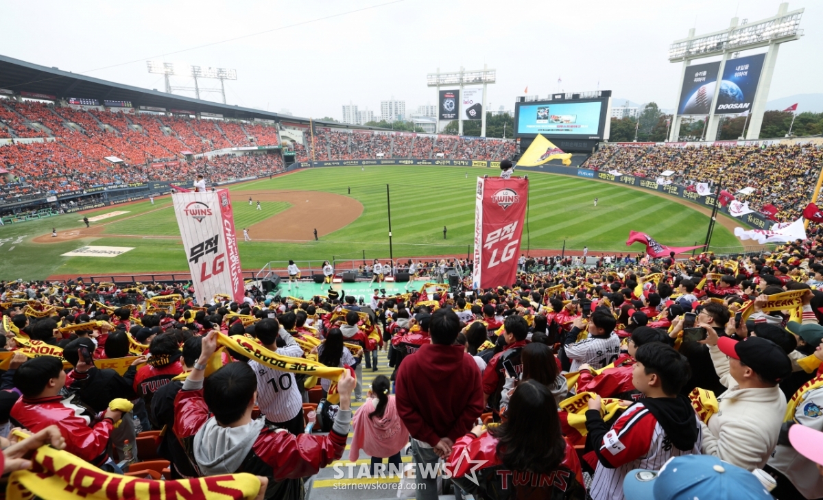 스포츠야구[포토] 명승부 즐기는 만원관중발행 : 2025.10.26 ・ 16:40잠실=김진경 대기자2025 KBO리그 한국시리즈 1차전 LG 트윈스 대 한화 이글스전이 26일 잠실야구장에서 열렸다.구장을 가득 메운 만원관중이 열띤 응원을 하며 명승부를 관전하고 있다.<저작권자 © 스타뉴스, 무단전재 및 재배포 금지>프로야구KBO폰세김경문_감독노시환하주석추천 기사김진경 대기자기자홈좋아요 스포츠-야구의 인기 급상승 뉴스스포츠-야구의 최신 뉴스