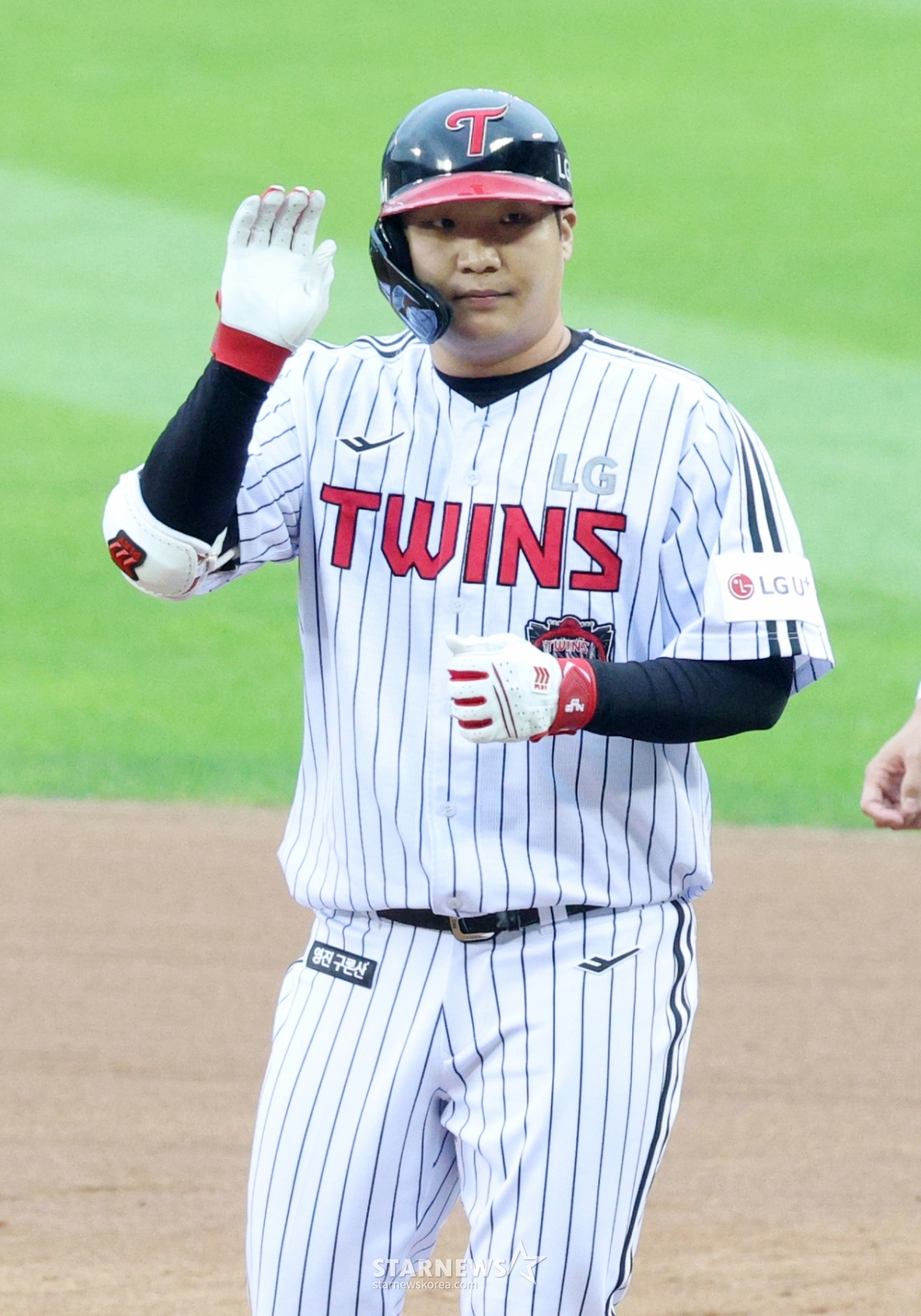 스포츠야구[포토] 문보경 '짐 싸도 되실 듯'발행 : 2025.10.26 ・ 16:48잠실=김진경 대기자2025 KBO리그 한국시리즈 1차전 LG 트윈스 대 한화 이글스전이 26일 잠실야구장에서 열렸다.LG 문보경이 6회말 2사 1,2루에서 1타점 적시타를 날리고 출루한 후 세리머니를 하고 있다.<저작권자 © 스타뉴스, 무단전재 및 재배포 금지>프로야구KBO폰세김경문_감독노시환하주석추천 기사김진경 대기자기자홈좋아요 스포츠-야구의 인기 급상승 뉴스스포츠-야구의 최신 뉴스