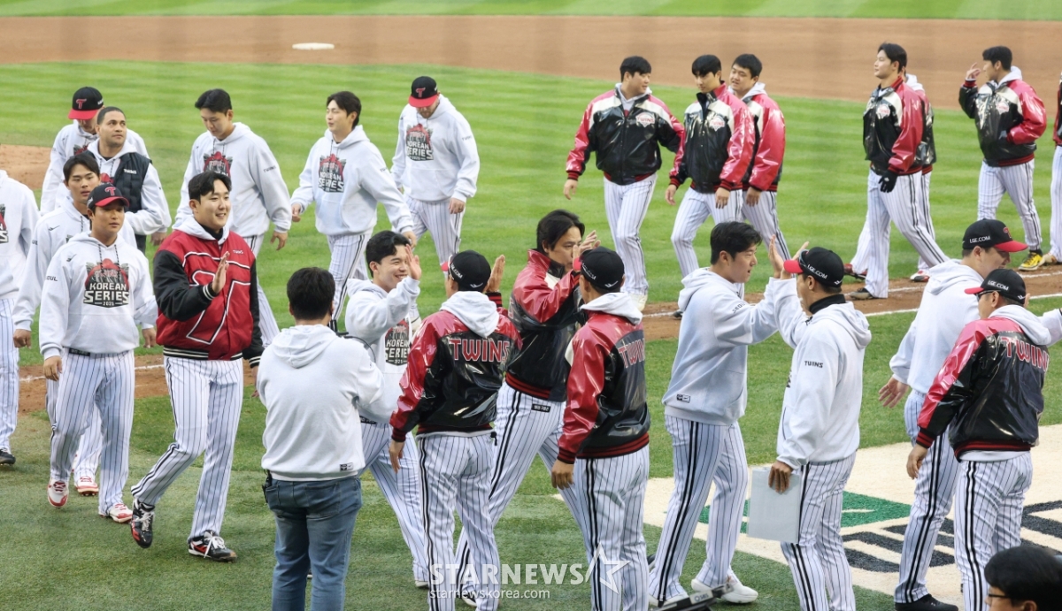 스포츠야구[포토] 유영찬 '염갈량이 웃었다'발행 : 2025.10.26 ・ 17:14잠실=김진경 대기자2025 KBO리그 한국시리즈 1차전 LG 트윈스 대 한화 이글스전이 26일 잠실야구장에서 열렸다.LG 선수들이 한화에 8-2로 승리한 후 염경엽 감독과 하이파이브하고 있다.<저작권자 © 스타뉴스, 무단전재 및 재배포 금지>프로야구KBO폰세김경문_감독노시환하주석추천 기사김진경 대기자기자홈좋아요 스포츠-야구의 인기 급상승 뉴스스포츠-야구의 최신 뉴스