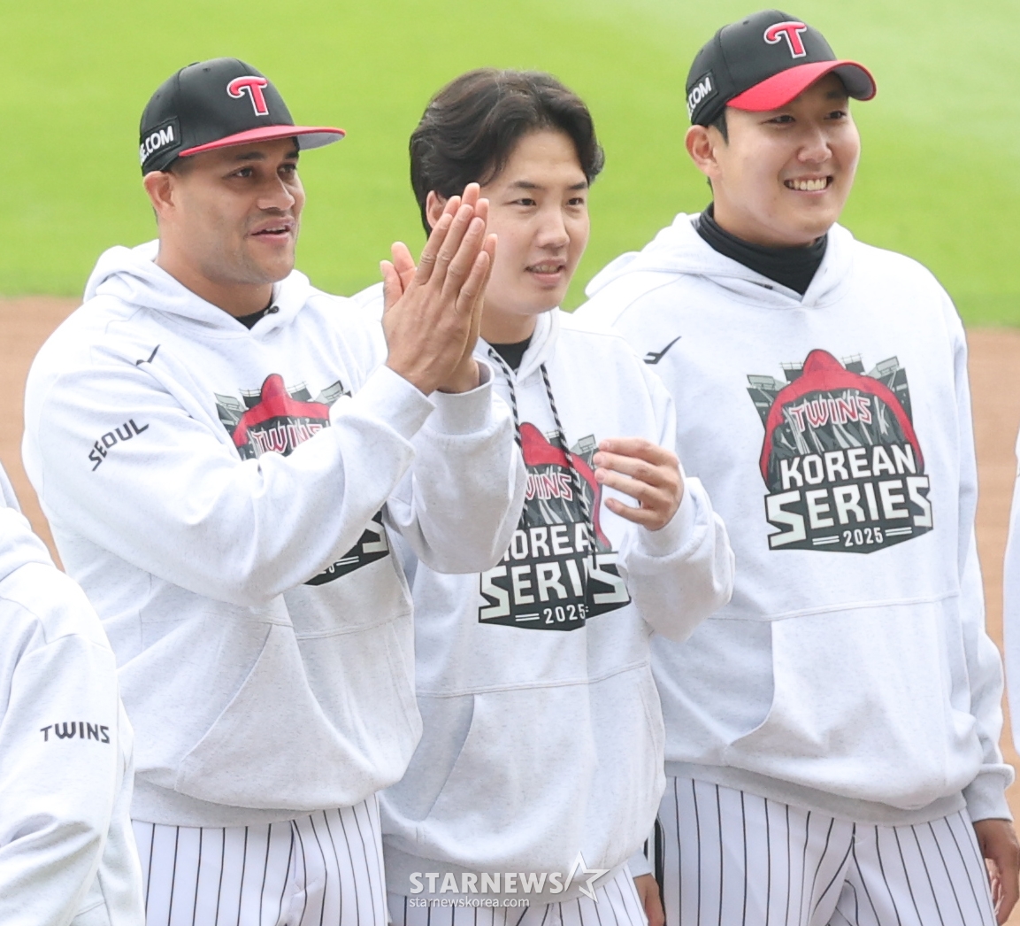 스포츠야구[포토] 치리노스-임찬규-손주영 '우리가 해낸다'발행 : 2025.10.27 ・ 08:55조회수 :잠실=김진경 대기자2025 KBO리그 한국시리즈 1차전 LG 트윈스 대 한화 이글스전이 26일 잠실야구장에서 열렸다.개막식 행사애서 LG 치리노스, 임찬규, 손주영이 환호하는 팬들과 소통하고 있다.<저작권자 © 스타뉴스, 무단전재 및 재배포 금지>브리핑추천 기사김진경 대기자기자홈좋아요스포츠-야구의 인기 급상승 뉴스스포츠-야구의 최신 뉴스AD