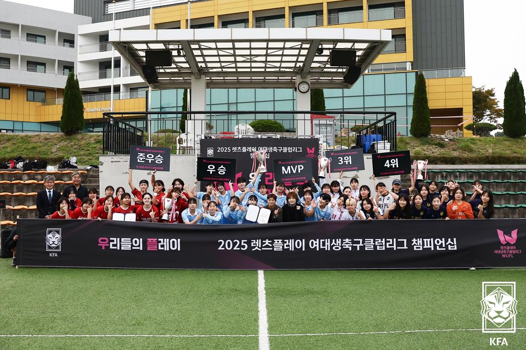 연합팀인 FC 화이트베어스가 올해로 4회째를 맞이한 '2025 렛츠플레이 여대생축구클럽리그(우플)'에서 처음으로 2년 연속 정상에 선 팀이 됐다.