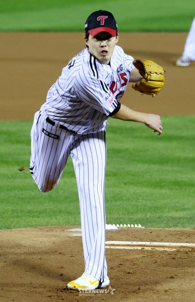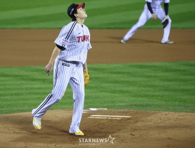 LG 트윈스 선발 임찬규가 1회에만 4실점을 기록하면서 고개를 숙였다.
