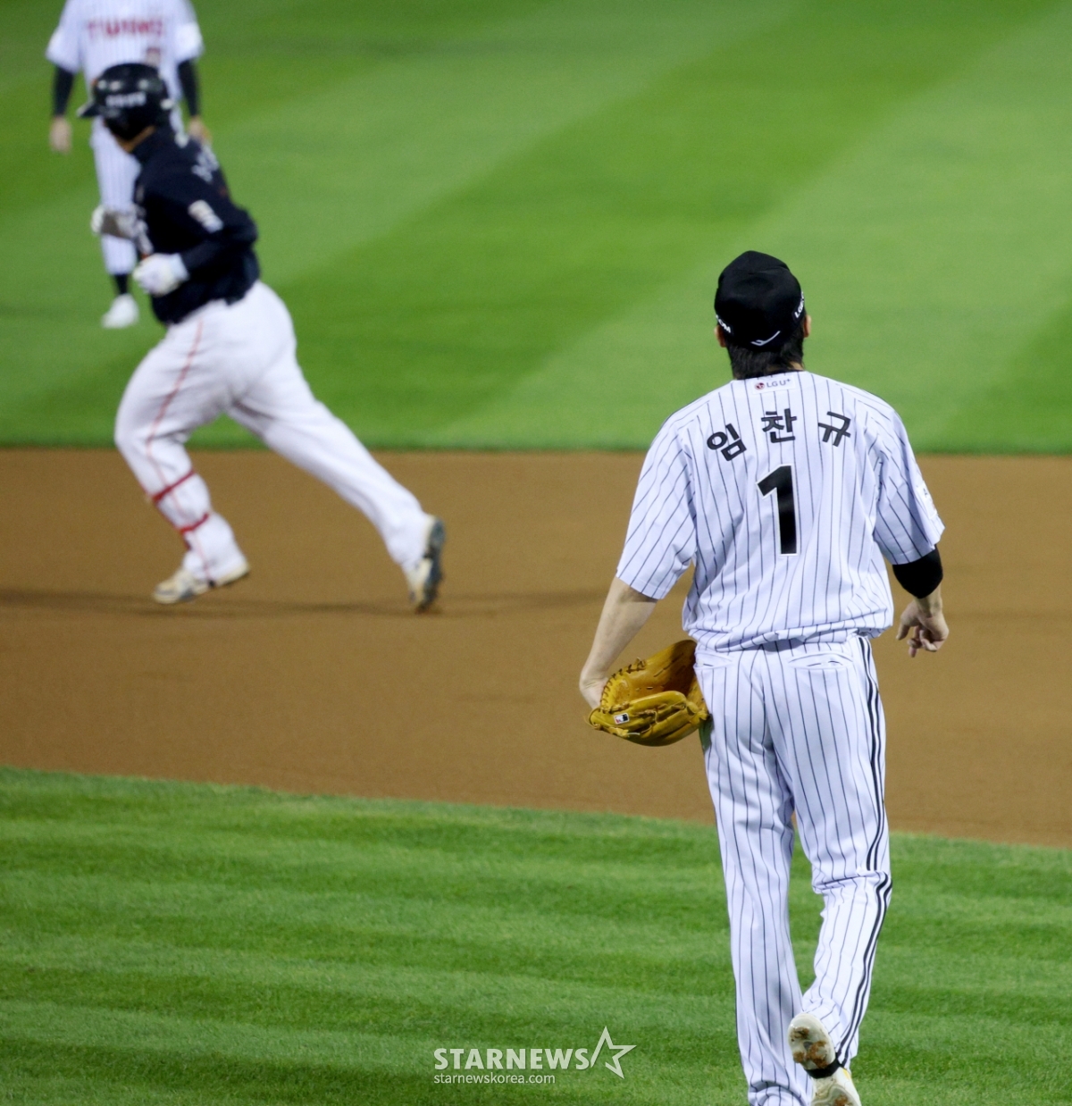 스포츠야구[포토] 임찬규 '1회 백투백 실화냐?'발행 : 2025.10.27 ・ 18:59잠실=김진경 대기자2025 KBO리그 한국시리즈 2차전 LG 트윈스 대 한화 이글스전이 27일 잠실야구장에서 열렸다.LG 선발 임찬규가 1회초 한화 문현빈에 이어 노시환에게 중월 1점 홈런을 얻어맞고 허탈해하고 있다.<저작권자 © 스타뉴스, 무단전재 및 재배포 금지>프로야구KBO폰세김경문_감독노시환하주석추천 기사김진경 대기자기자홈좋아요 스포츠-야구의 인기 급상승 뉴스스포츠-야구의 최신 뉴스