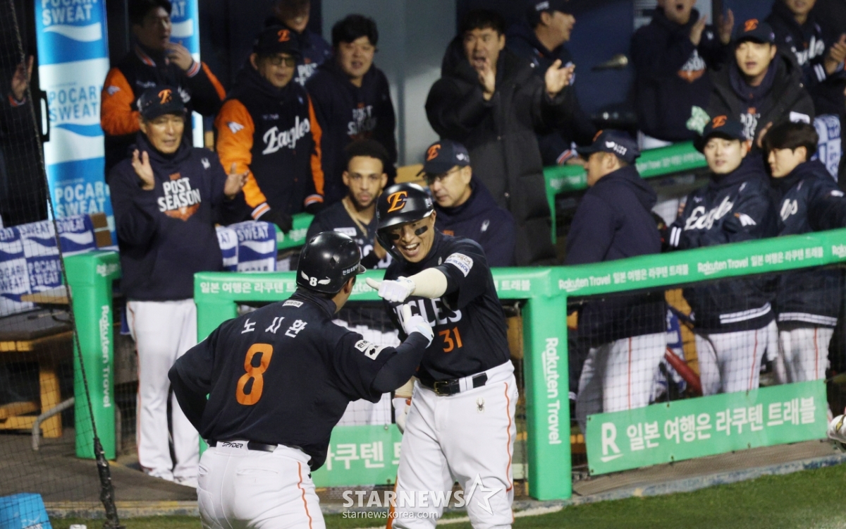 스포츠야구[포토] 노시환 '오빠와 주먹치기'발행 : 2025.10.27 ・ 19:09잠실=김진경 대기자2025 KBO리그 한국시리즈 2차전 LG 트윈스 대 한화 이글스전이 27일 잠실야구장에서 열렸다.한화 노시환이 1회초 1사에서 문현빈에 이어 중월 1점 홈런(백투백)을 날리고 홈인한 후 손아섭의 환영을 받고 있다.<저작권자 © 스타뉴스, 무단전재 및 재배포 금지>프로야구KBO폰세김경문_감독노시환하주석추천 기사김진경 대기자기자홈좋아요 스포츠-야구의 인기 급상승 뉴스스포츠-야구의 최신 뉴스