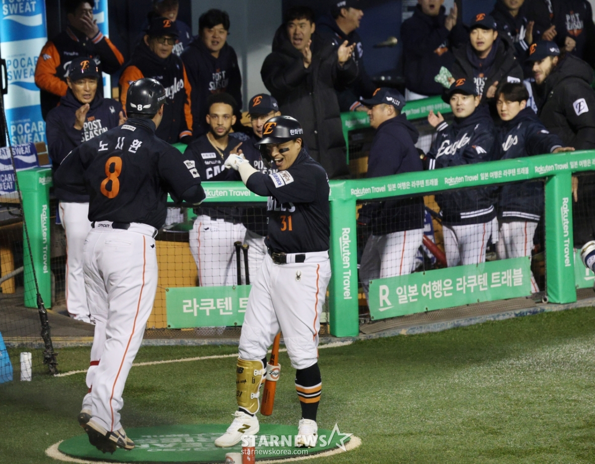스포츠야구[포토] 노시환 '홈런 두 방으로 1회 빅이닝'발행 : 2025.10.27 ・ 19:10잠실=김진경 대기자2025 KBO리그 한국시리즈 2차전 LG 트윈스 대 한화 이글스전이 27일 잠실야구장에서 열렸다.한화 노시환이 1회초 1사에서 문현빈에 이어 중월 1점 홈런(백투백)을 날리고 홈인한 후 손아섭의 환영을 받고 있다.<저작권자 © 스타뉴스, 무단전재 및 재배포 금지>프로야구KBO폰세김경문_감독노시환하주석추천 기사김진경 대기자기자홈좋아요 스포츠-야구의 인기 급상승 뉴스스포츠-야구의 최신 뉴스