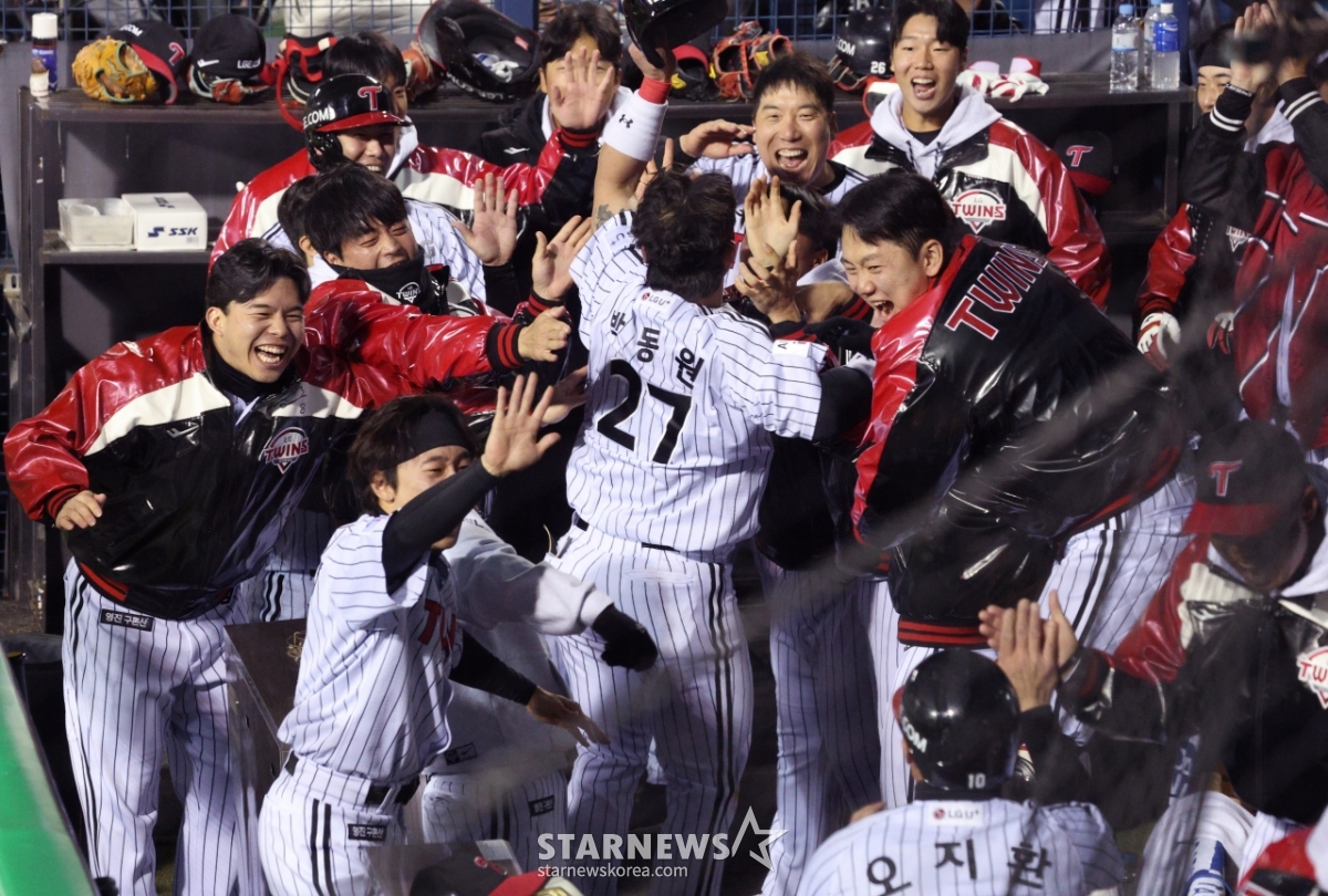 스포츠야구[포토] 박동원 '동점에 그치겠는가'발행 : 2025.10.27 ・ 19:37잠실=김진경 대기자2025 KBO리그 한국시리즈 2차전 LG 트윈스 대 한화 이글스전이 27일 잠실야구장에서 열렸다.LG 2회말 무사 2,3루에서 구본혁의 동점 2타점 적시타 때 홈을 밟은 박동원이 더그아웃에서 동료들의 환영을 받고 있다.<저작권자 © 스타뉴스, 무단전재 및 재배포 금지>프로야구KBO폰세김경문_감독노시환하주석추천 기사김진경 대기자기자홈좋아요 스포츠-야구의 인기 급상승 뉴스스포츠-야구의 최신 뉴스