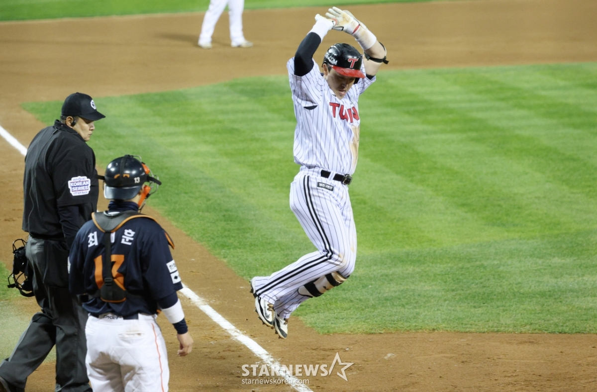 스포츠야구[포토] 박동원 '금의환향 점프'발행 : 2025.10.27 ・ 19:59잠실=김진경 대기자2025 KBO리그 한국시리즈 2차전 LG 트윈스 대 한화 이글스전이 27일 잠실야구장에서 열렸다.LG 박동원이 3회말 2사 1루에서 좌월 2점 홈런을 날린 후 환호하며 홈인하고 있다.<저작권자 © 스타뉴스, 무단전재 및 재배포 금지>프로야구KBO폰세김경문_감독노시환하주석추천 기사김진경 대기자기자홈좋아요 스포츠-야구의 인기 급상승 뉴스스포츠-야구의 최신 뉴스