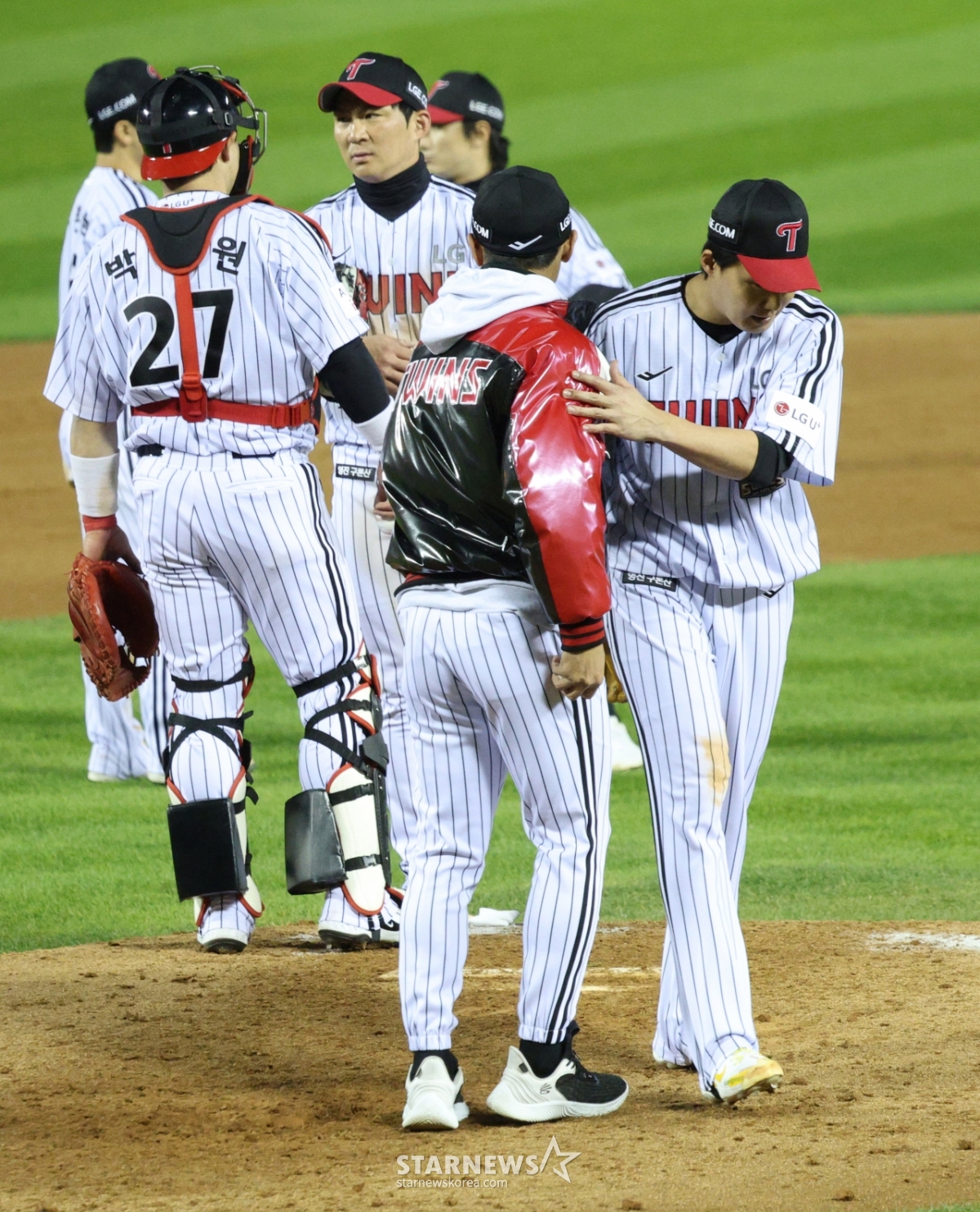 스포츠야구[포토] 임찬규 '아쉽지만 여기까지'발행 : 2025.10.27 ・ 20:38잠실=김진경 대기자2025 KBO리그 한국시리즈 2차전 LG 트윈스 대 한화 이글스전이 27일 잠실야구장에서 열렸다.LG 선발 임찬규가 교체되고 있다.<저작권자 © 스타뉴스, 무단전재 및 재배포 금지>프로야구KBO폰세김경문_감독노시환하주석추천 기사김진경 대기자기자홈좋아요 스포츠-야구의 인기 급상승 뉴스스포츠-야구의 최신 뉴스