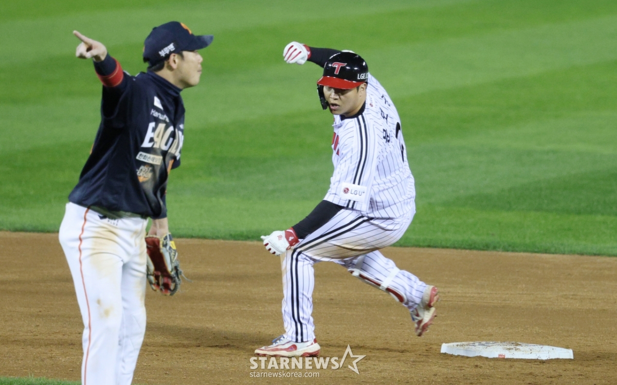 스포츠야구[포토] 문보경 '홈런이 아니란 말인가'발행 : 2025.10.27 ・ 21:01잠실=김진경 대기자2025 KBO리그 한국시리즈 2차전 LG 트윈스 대 한화 이글스전이 27일 잠실야구장에서 열렸다.LG 문보경이 4회말 2사 만루에서 주자일소 3타점 적시 2루타를 날리고 2루에 안착하고 있다.<저작권자 © 스타뉴스, 무단전재 및 재배포 금지>프로야구KBO폰세김경문_감독노시환하주석추천 기사김진경 대기자기자홈좋아요 스포츠-야구의 인기 급상승 뉴스스포츠-야구의 최신 뉴스