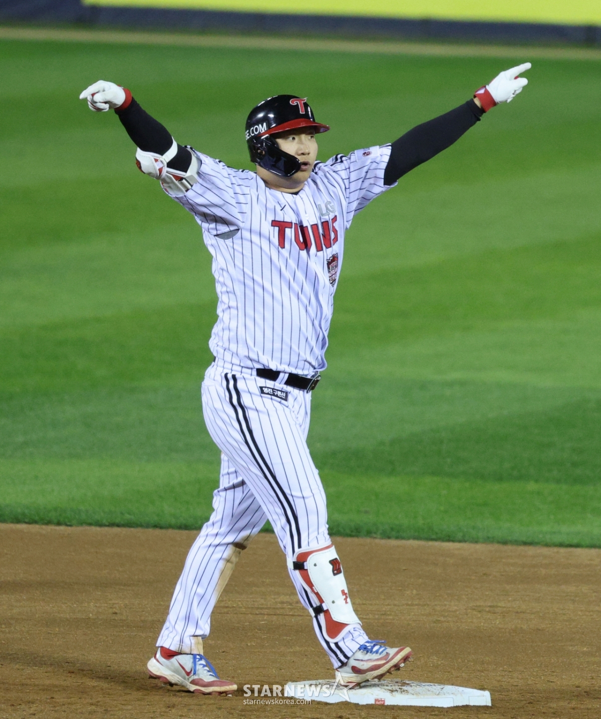 스포츠야구[포토] 문보경 '독수리 세리머니는 아닙니다만'발행 : 2025.10.27 ・ 21:06잠실=김진경 대기자2025 KBO리그 한국시리즈 2차전 LG 트윈스 대 한화 이글스전이 27일 잠실야구장에서 열렸다.LG 문보경이 4회말 2사 만루에서 주자일소 3타점 적시 2루타를 날리고 2루에 안착한 후 홈런과 관련 비디오 판독을 요청하고 있다.<저작권자 © 스타뉴스, 무단전재 및 재배포 금지>프로야구KBO폰세김경문_감독노시환하주석추천 기사김진경 대기자기자홈좋아요 스포츠-야구의 인기 급상승 뉴스스포츠-야구의 최신 뉴스