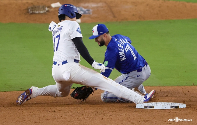 9회말 특이한 장면도 나왔다. 토론토는 1사를 잡고난 뒤 주자 없는 상황에서 오타니를 고의 사구로 내보냈다. 여기서 오타니는 2루 도루를 시도하는 과정에서 아웃됐다. 비디오 판독까지 이어가봤지만 최초 판정은 바뀌지 않았다.