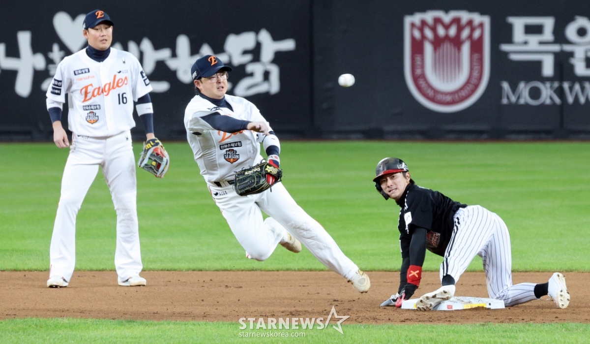 스포츠야구[포토] '1회초 1사 1루, 이도윤의 호수비로 이닝 마무리' 폰세발행 : 2025.10.29 ・ 19:06대전=강영조 선임기자한화 우완투수 폰세가 29일 대전한화생명볼파크에서 열린 2025KBO리그 한화이글스와 LG트윈스의 한국시리즈3차전 1회초 1사 1루 LG 3번타자 오스틴을 투수앞 땅볼로 유도해 병살로 이닝을 마무리하고 있다. 폰세의 악송구에도 불구하고 2루수 이도윤이 1루로 정확히 송구하며 타자주자도 잡아내고 있다. 2025.10.29.<저작권자 © 스타뉴스, 무단전재 및 재배포 금지>브리핑요약 없이도 가볍게 읽으실 수 있는 짧은 뉴스입니다.추천 기사강영조 선임기자기자홈좋아요스포츠-야구의 인기 급상승 뉴스스포츠-야구의 최신 뉴스