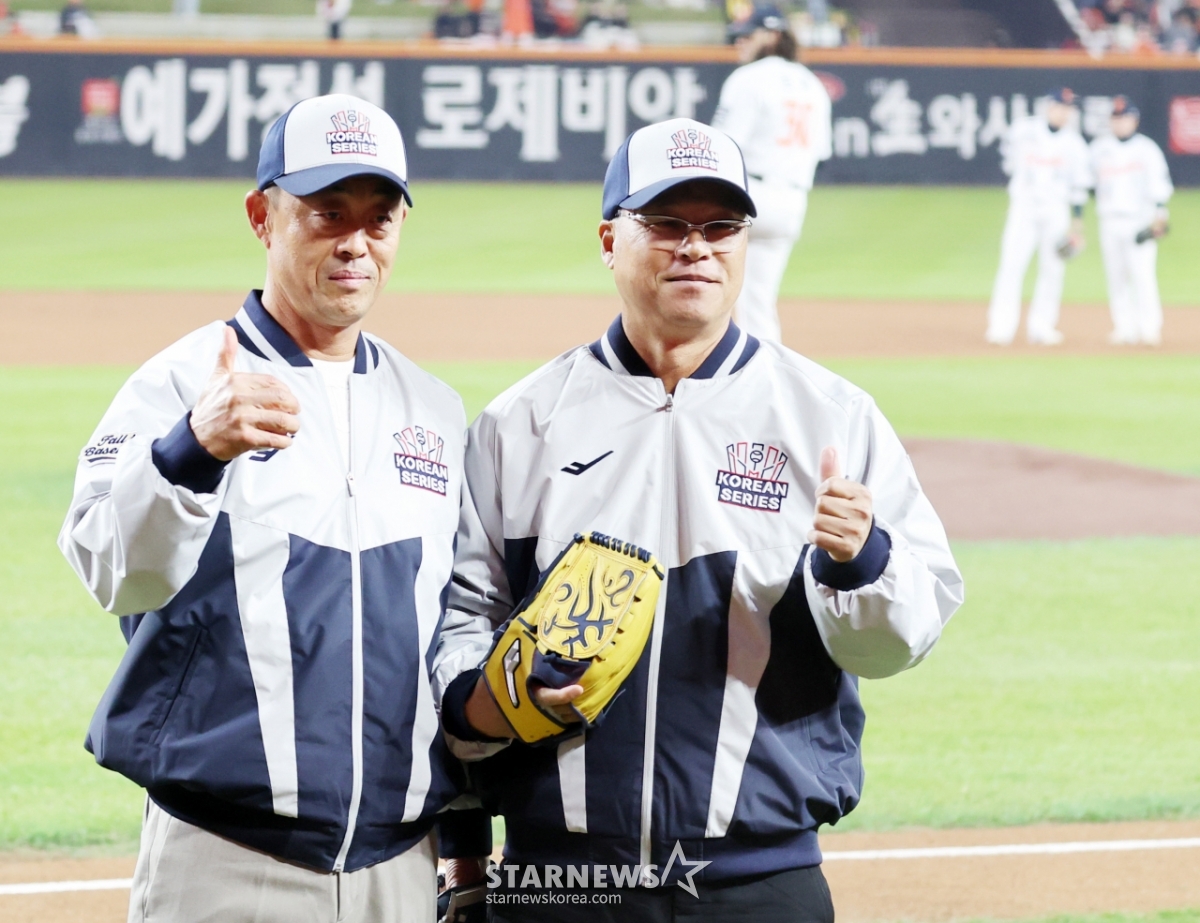스포츠야구[한번에쓱] '한국시리즈 3차전 시구는' 독수리 좌완 레전드 구대성발행 : 2025.10.29 ・ 19:20대전=강영조 선임기자한화 좌완 레전드 구대성과 함께 호흡을 맞췄던 포수 조경택이 29일 대전한화생명볼파크에서 열린 2025KBO리그 한화이글스와 LG트윈스의 한국시리즈3차전에서 시구와 시포를 하고 있다. 2025.10.29.<저작권자 © 스타뉴스, 무단전재 및 재배포 금지>한국레전드구대성시리즈시구좌완추천 기사강영조 선임기자기자홈좋아요 스포츠-야구의 인기 급상승 뉴스스포츠-야구의 최신 뉴스