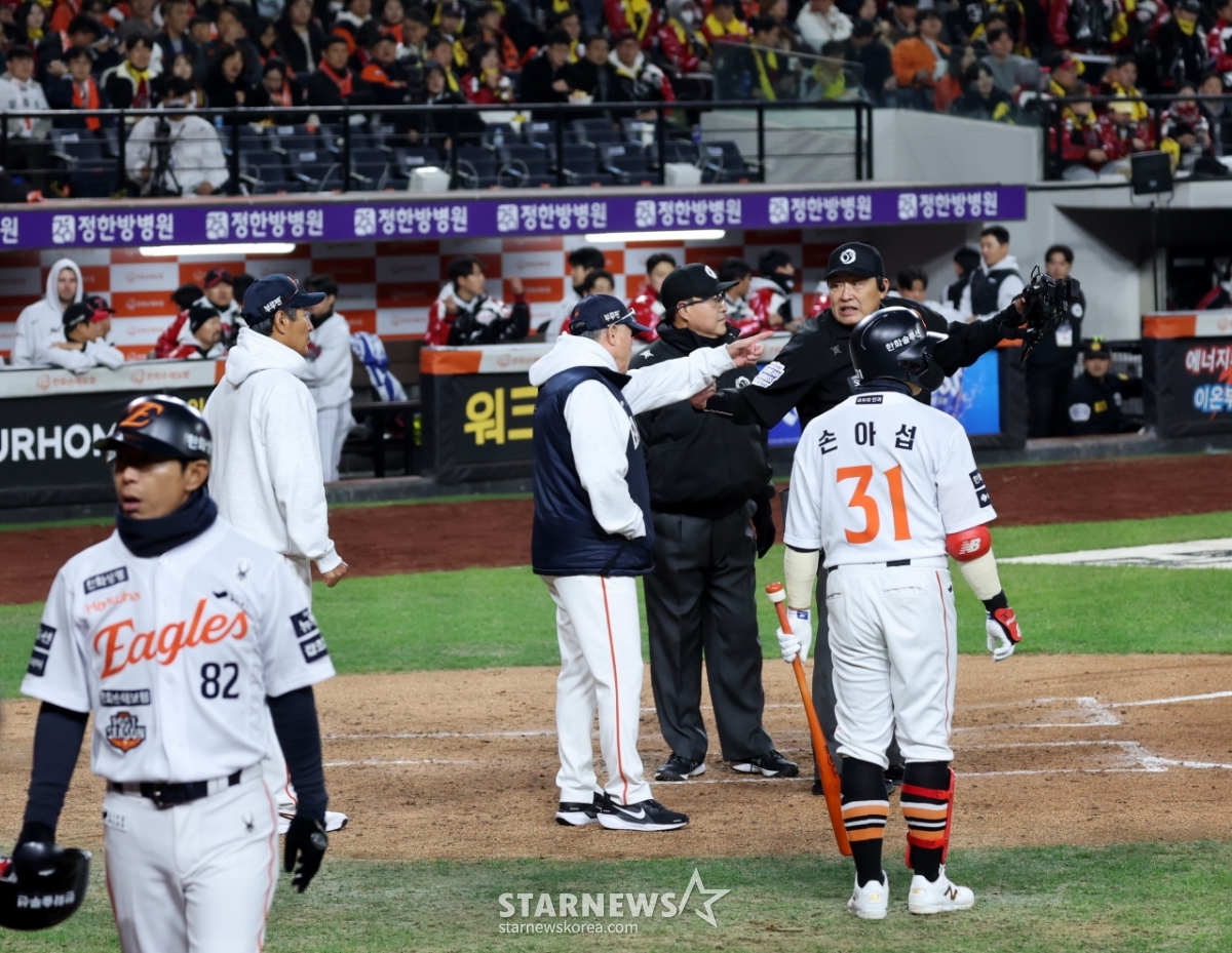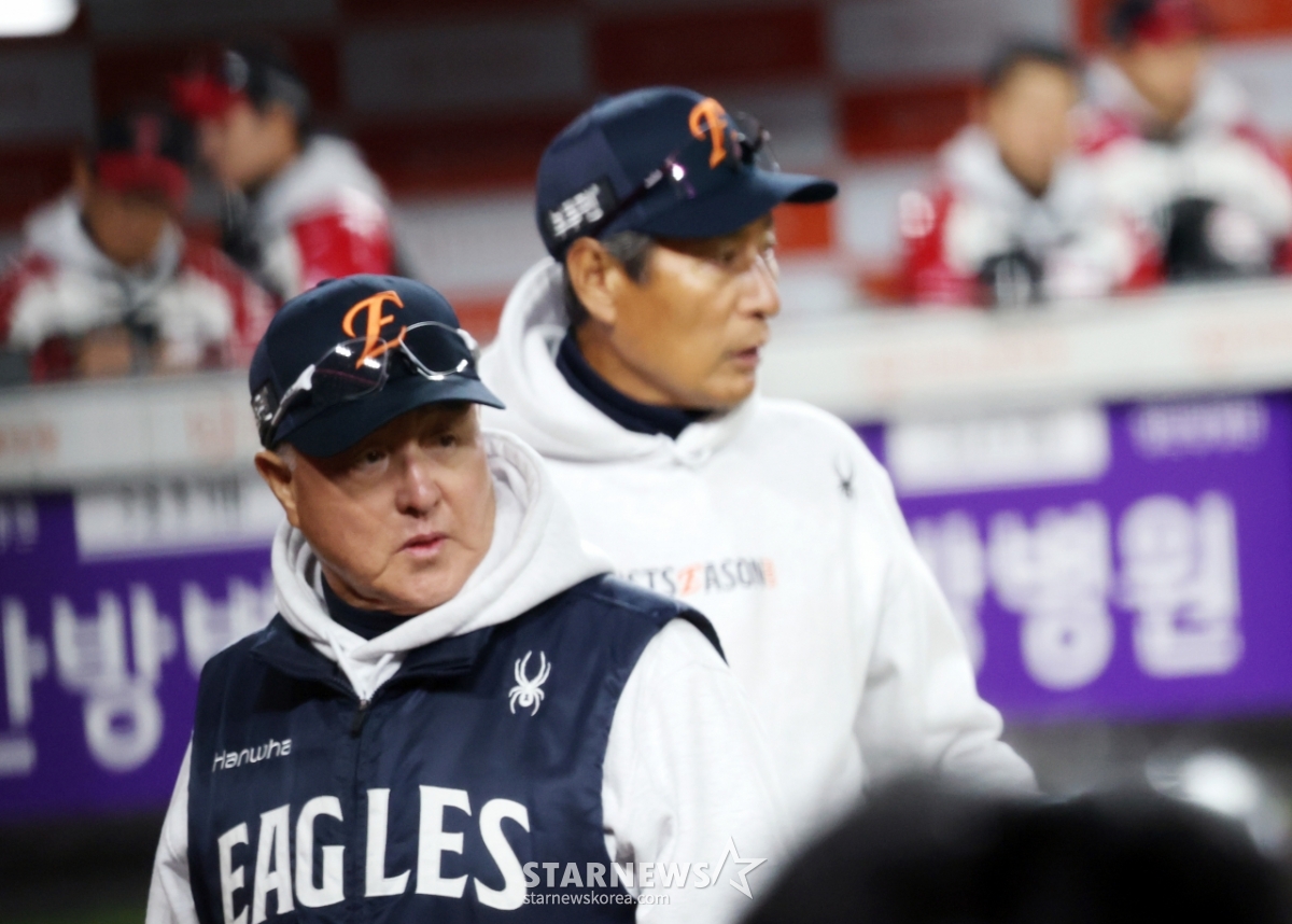 스포츠야구[포토] '2회말 추가점수가 아쉽다' 김경문 감독발행 : 2025.10.29 ・ 19:35대전=강영조 선임기자한화 김경문 감독이 29일 대전한화생명볼파크에서 열린 2025KBO리그 한화이글스와 LG트윈스의 한국시리즈3차전 2회말 1사 1,2루 이도윤의 유격수앞땅볼때 인필드플라이 선언을 하지않은 것에 항의한 후 더그아웃으로 향하고 있다. 2025.10.29.<저작권자 © 스타뉴스, 무단전재 및 재배포 금지>김경문감독대전볼파크한화이글스트윈스추천 기사강영조 선임기자기자홈좋아요 스포츠-야구의 인기 급상승 뉴스스포츠-야구의 최신 뉴스