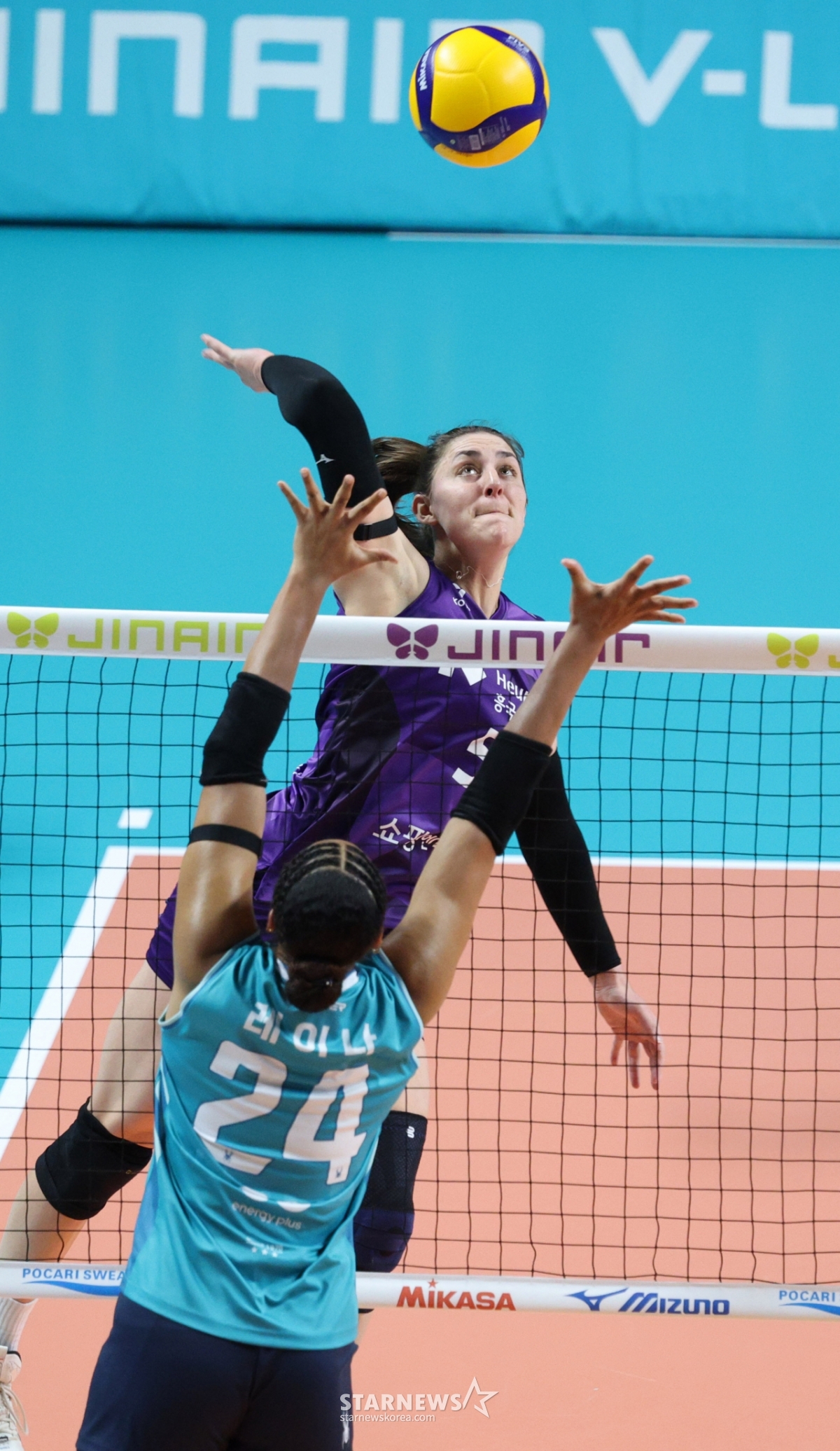 스포츠일반[포토] 피치 '높이의 승리'발행 : 2025.10.29 ・ 20:04수정 : 2025.10.29 ・ 20:07장충=김진경 대기자2025-2026시즌 V리그 여자부 GS칼텍스 대 흥국생명 경기가 18일 서울 장충체육관에서 열렸다.흥국생명 피치가 GS칼텍스 레이나의 블로킹 위로 강스파이크를 날리고 있다.<저작권자 © 스타뉴스, 무단전재 및 재배포 금지>프로배구V리그GS칼텍스흥국생명이다현레베카추천 기사김진경 대기자기자홈좋아요 스포츠-일반의 인기 급상승 뉴스스포츠-일반의 최신 뉴스