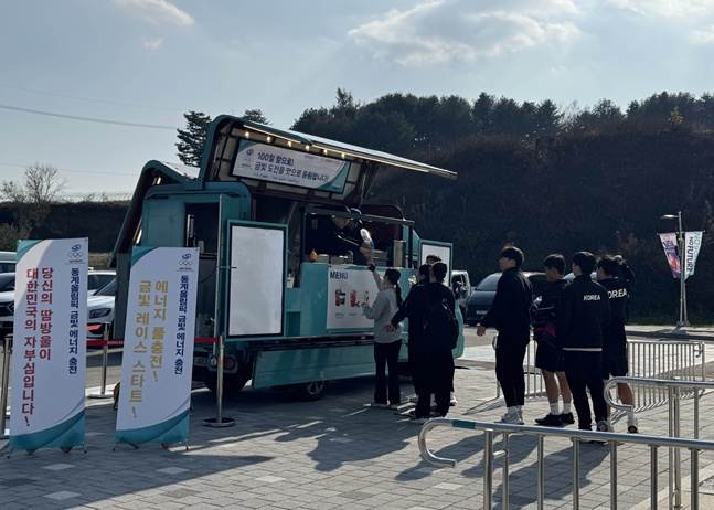 지난 28일 평창동계훈련센터에서는 올림픽을 100일 앞두고 훈련에 여념이 없는 선수들을 대상으로 '금빛에너지 데이'를 운영했다. 사전 선호도 조사를 통해 마련한 특식과 푸드트럭을 통해 간식을 제공하고, 선수·지도자·임직원이 함께 참여하는 응원 메시지 이벤트를 열었다.