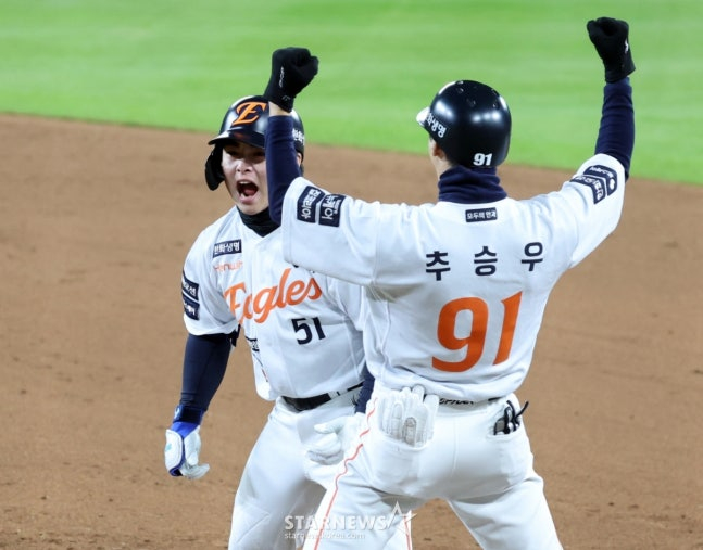 그러나 한화의 위기는 계속됐다. 홍창기가 우전 안타로 출루했고 신민재가 1루 땅볼로 2사 2, 3루를 만들었다. 여기서 김현수는 우전 2타점 적시타로 5-4 역전을 일궈냈다. 뒤이어 문보경마저 우측 담장을 맞히는 대형 1타점 적시 2루타를 치면서 쐐기를 박았다.
