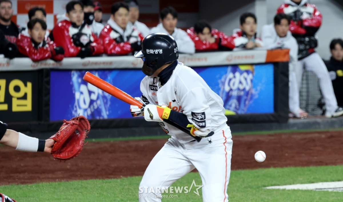 스포츠야구[포토]'어...방향이 이상하네!' 채은성발행 : 2025.10.30 ・ 19:44대전=강영조 선임기자한화 5번타자 채은성이 30일 대전한화생명볼파크에서 열린 2025KBO리그 한화이글스와 LG트윈스의 한국시리즈4차전 4회말 무사 2루에서 번트를 시도하다 볼을 맞고 고통스러워하고 있다. 2025.10.30.<저작권자 © 스타뉴스, 무단전재 및 재배포 금지>채은성대전볼파크한화이글스트윈스한국추천 기사강영조 선임기자기자홈좋아요 스포츠-야구의 인기 급상승 뉴스스포츠-야구의 최신 뉴스