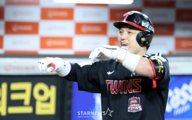 승리까지 아웃카운트는 단 3개. 8회에 이어 9회에도 마운드에 오른 3차전 승리 투수 김서현을 완벽히 무너뜨렸다. 오지환의 볼넷에 이어 박동원이 한 점 차로 추격하는 투런 홈런을 날렸다. 이어 1사에서 박해민이 볼넷으로 걸어나갔다.