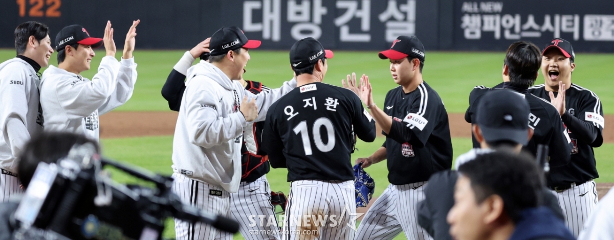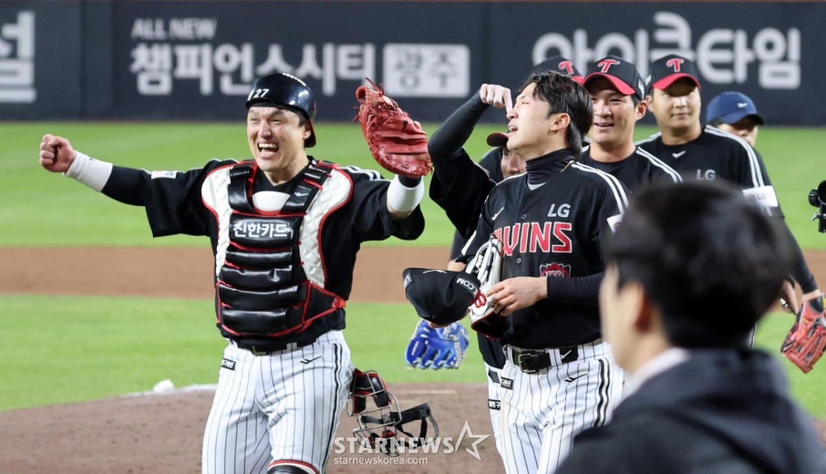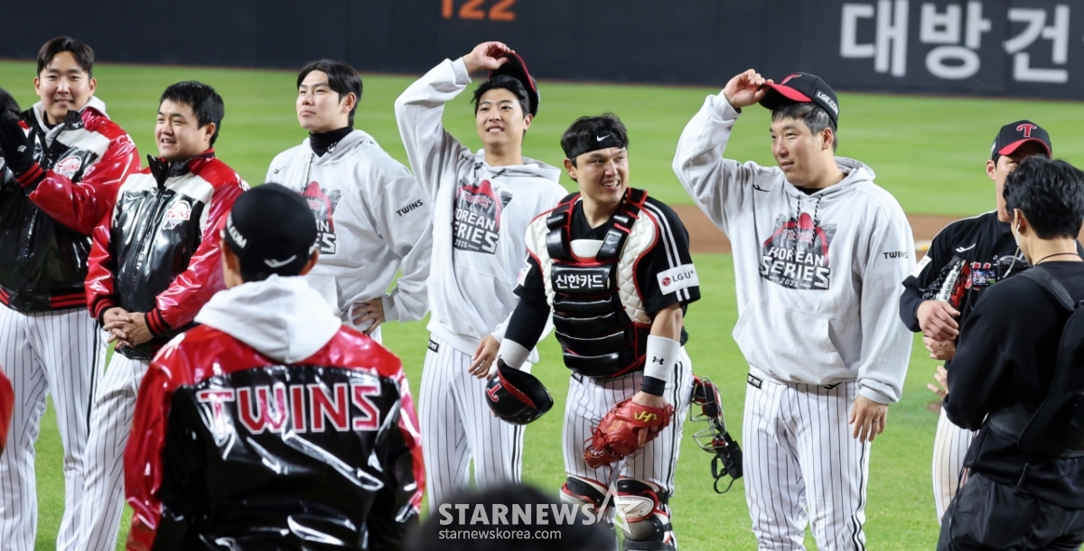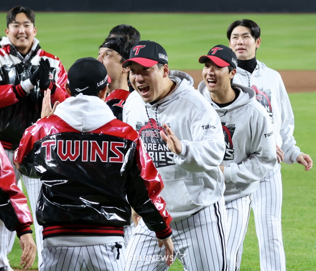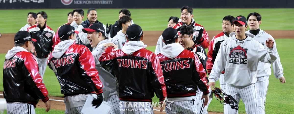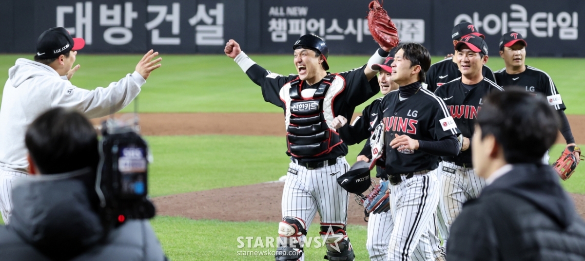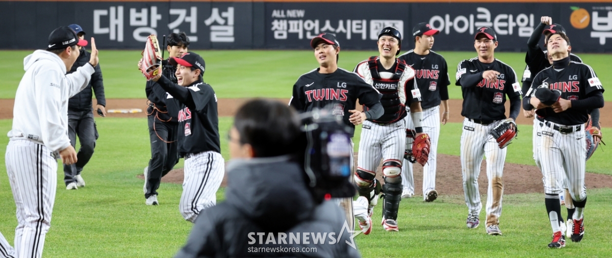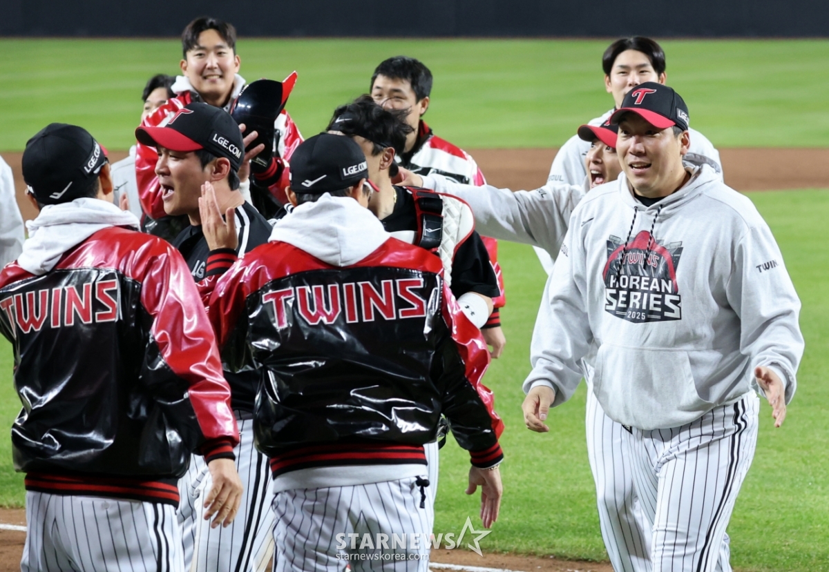 스포츠야구[한번에쓱]'선수들 맞는' 오늘의 히어로 김현수발행 : 2025.10.30 ・ 22:28대전=강영조 선임기자LG 역전타 주인공 김현수가 30일 대전한화생명볼파크에서 열린 2025KBO리그 한화이글스와 LG트윈스의 한국시리즈4차전 9회말 수비를 마무리한 야수들과 자축하고 있다. 2025.10.30.염경엽 감독의 MVP 김현수를 맞고 있다.<저작권자 © 스타뉴스, 무단전재 및 재배포 금지>김현수히어로대전볼파크한화이글스트윈스추천 기사강영조 선임기자기자홈좋아요 스포츠-야구의 인기 급상승 뉴스스포츠-야구의 최신 뉴스