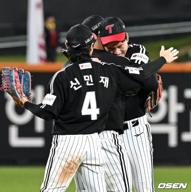 이어 "우승하면 또 울진 모르겠다. 상상은 많이 했는데 어제 먼저 터트려서 오늘은 모르겠다. 올해 같은 계열사의 팀(프로농구 창원 LG 세이커스)이 먼저 우승했기에 그 기를 받기 위해 세리머니도 바꿨다. 2025년을 LG의 해로 만들어 보자고 했는데 잘 마무리해서 그 목표를 이루도록 하겠다"고 강조했다.