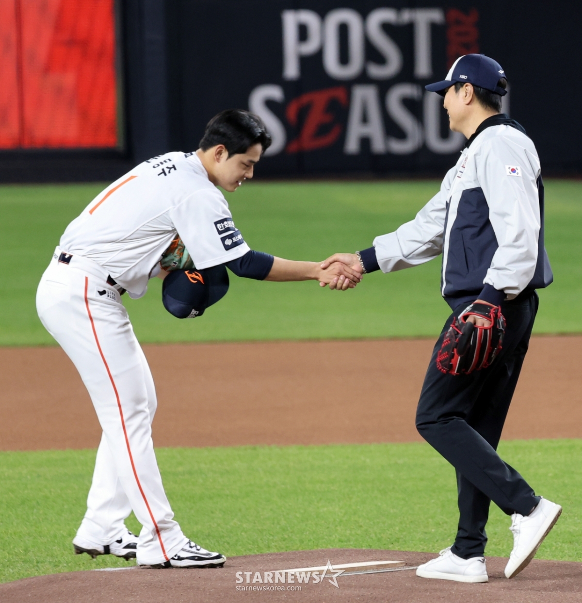 스포츠야구[한번에쓱]'잠실로 꼭 가시길' 5차전 시구나선 정민철발행 : 2025.10.31 ・ 18:47대전=강영조 선임기자한화 레전드 우완투수 정민철과 홈런왕 장종훈이 31일 대전한화생명볼파크에서 열린 2025KBO리그 한화이글스와 LG트윈스의 한국시리즈5차전에서 시구와 시타를 맡아 경기시작을 알리고 있다. 2025.10.31.<저작권자 © 스타뉴스, 무단전재 및 재배포 금지>정민철잠실시구레전드홈런왕장종훈추천 기사강영조 선임기자기자홈좋아요 스포츠-야구의 인기 급상승 뉴스스포츠-야구의 최신 뉴스