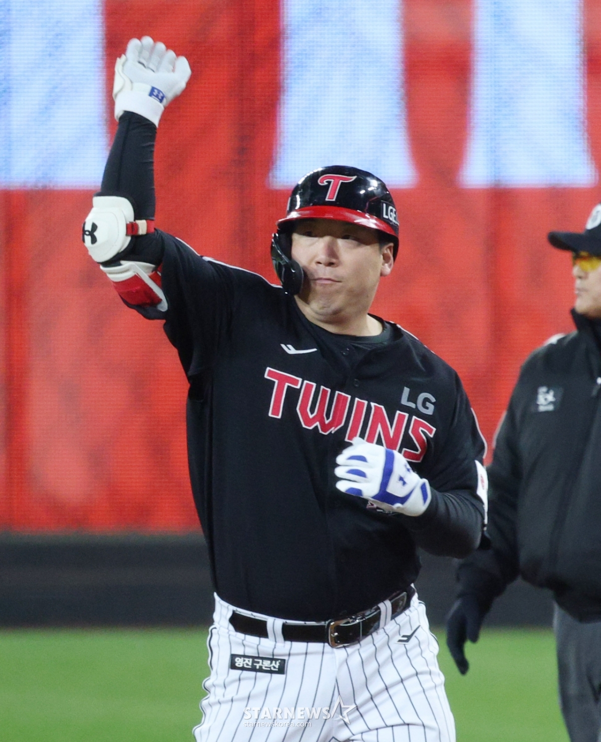 스포츠야구[포토] 김현수 선제타 '또 포텐터짐인가'발행 : 2025.10.31 ・ 18:46대전=김진경 대기자2025 KBO리그 한국시리즈 5차전 한화 이글스 대 LG 트윈스전이 31일 대전 한화생명 볼파크에서 열렸다.LG 김현수가 1회초 1사 2루에서 선제 1타점 적시타를 날리고 출루한 후 세리머니를 하고 있다.<저작권자 © 스타뉴스, 무단전재 및 재배포 금지>프로야구KBO톨허스트문동주박동원정민철추천 기사김진경 대기자기자홈좋아요 스포츠-야구의 인기 급상승 뉴스스포츠-야구의 최신 뉴스