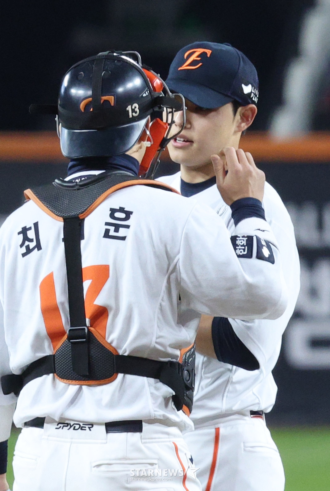 스포츠야구[포토] 문동주 '정신차려 프린스'발행 : 2025.10.31 ・ 18:49대전=김진경 대기자2025 KBO리그 한국시리즈 5차전 한화 이글스 대 LG 트윈스전이 31일 대전 한화생명 볼파크에서 열렸다.한화 선발 문동주가 1회 흔들리는 모습을 보이자 포수 최재훈이 마운드로 가 진정시키고 있다.<저작권자 © 스타뉴스, 무단전재 및 재배포 금지>프로야구KBO톨허스트문동주박동원정민철추천 기사김진경 대기자기자홈좋아요 스포츠-야구의 인기 급상승 뉴스스포츠-야구의 최신 뉴스