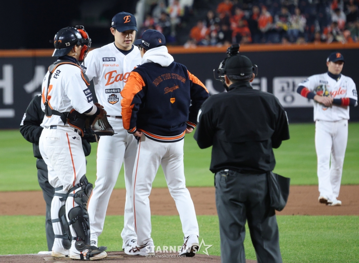 스포츠야구[포토] 문동주 '여기가 끝인가'발행 : 2025.10.31 ・ 18:52수정 : 2025.10.31 ・ 19:00대전=김진경 대기자2025 KBO리그 한국시리즈 5차전 한화 이글스 대 LG 트윈스전이 31일 대전 한화생명 볼파크에서 열렸다.한화 선발 문동주가 1회 흔들리는 모습을 보이자 양상문 코치가 마운드로 가 진정시키고 있다.<저작권자 © 스타뉴스, 무단전재 및 재배포 금지>브리핑요약 없이도 가볍게 읽으실 수 있는 짧은 뉴스입니다.추천 기사김진경 대기자기자홈좋아요스포츠-야구의 인기 급상승 뉴스스포츠-야구의 최신 뉴스