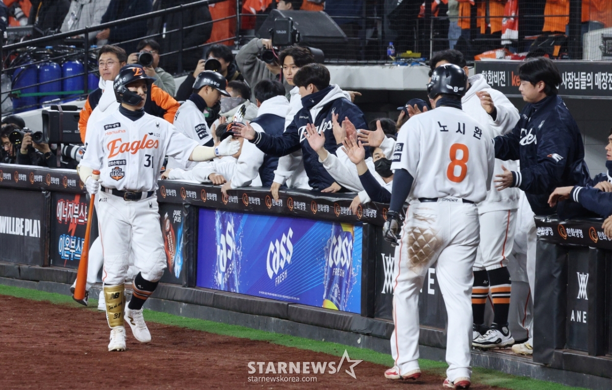 스포츠야구[포토] 노시환 '승부는 원점'발행 : 2025.10.31 ・ 19:22대전=김진경 대기자2025 KBO리그 한국시리즈 5차전 한화 이글스 대 LG 트윈스전이 31일 대전 한화생명 볼파크에서 열렸다.한화 2회말 1사 만루에서 3루주자 노시환이 이원석의 내야땅볼 때 동점 득점을 한 후 동료들의 환영을 받고 있다.<저작권자 © 스타뉴스, 무단전재 및 재배포 금지>프로야구KBO톨허스트문동주박동원정민철추천 기사김진경 대기자기자홈좋아요 스포츠-야구의 인기 급상승 뉴스스포츠-야구의 최신 뉴스
