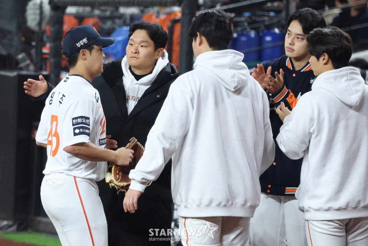 스포츠야구[포토] 호투 정우주에 문동주 박수발행 : 2025.10.31 ・ 19:53대전=김진경 대기자2025 KBO리그 한국시리즈 5차전 한화 이글스 대 LG 트윈스전이 31일 대전 한화생명 볼파크에서 열렸다.한화 정우주가 4회 교체, 더그아웃에서 동료들의 위로를 받고 있다.<저작권자 © 스타뉴스, 무단전재 및 재배포 금지>프로야구KBO톨허스트문동주박동원정민철추천 기사김진경 대기자기자홈좋아요 스포츠-야구의 인기 급상승 뉴스스포츠-야구의 최신 뉴스