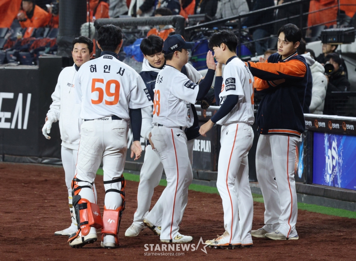 스포츠야구[포토] 문동주 환영받는 김종수발행 : 2025.10.31 ・ 20:25대전=김진경 대기자2025 KBO리그 한국시리즈 5차전 한화 이글스 대 LG 트윈스전이 31일 대전 한화생명 볼파크에서 열렸다.한화 김종수가 무실점으로 이닝을 마친 후 더그아웃에서 문동주의 환영을 받고 있다.<저작권자 © 스타뉴스, 무단전재 및 재배포 금지>프로야구KBO톨허스트문동주박동원정민철추천 기사김진경 대기자기자홈좋아요 스포츠-야구의 인기 급상승 뉴스스포츠-야구의 최신 뉴스