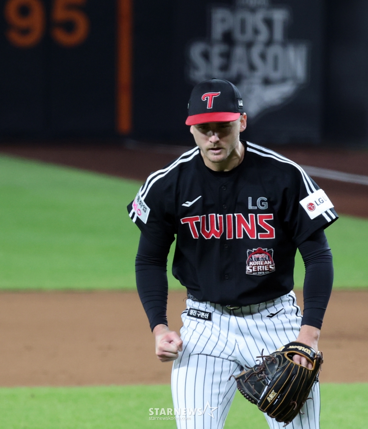 스포츠야구[포토]7회말 최재훈 삼진 잡으며 환호하는 톨허스트발행 : 2025.10.31 ・ 21:07대전=강영조 선임기자LG 톨허스트가 31일 대전한화생명볼파크에서 열린 2025KBO리그 한화이글스와 LG트윈스의 한국시리즈5차전 7회말 최재훈을 삼진 잡으며 환호하고 있다. 2025.10.31.<저작권자 © 스타뉴스, 무단전재 및 재배포 금지>최재훈허스트환호대전볼파크한화이글스추천 기사강영조 선임기자기자홈좋아요 스포츠-야구의 인기 급상승 뉴스스포츠-야구의 최신 뉴스