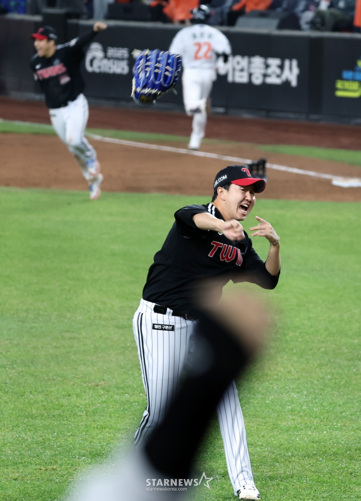 스포츠야구[한번에쓱]'우승이다!' 글러브 던지기 세리머니 유영찬발행 : 2025.10.31 ・ 22:23대전=강영조 선임기자LG마무리 유영찬이 31일 대전한화생명볼파크에서 열린 2025KBO리그 한화이글스와 LG트윈스의 한국시리즈5차전 9회말 마지막 타자를 잡아낸 후 글러브를 던지며 환호하고 있다. 2025.10.31.<저작권자 © 스타뉴스, 무단전재 및 재배포 금지>유영찬머니글러브대전볼파크한화이글스추천 기사강영조 선임기자기자홈좋아요 스포츠-야구의 인기 급상승 뉴스스포츠-야구의 최신 뉴스