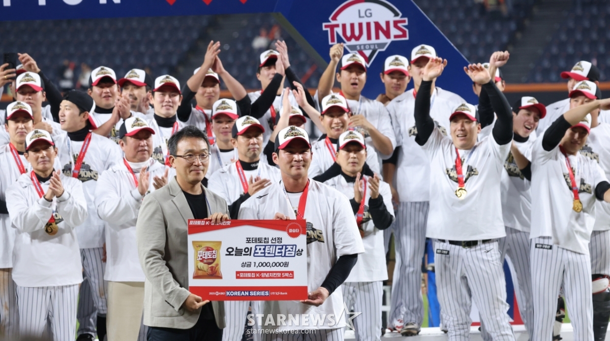 스포츠야구[포토] 오지환 '짜릿한 포텐터짐'발행 : 2025.10.31 ・ 22:57대전=김진경 대기자2025 KBO리그 한국시리즈 5차전 한화 이글스 대 LG 트윈스전이 31일 대전 한화생명 볼파크에서 열렸다.LG 트윈스가 4승1패로 우승을 차지했다.오지환이 포텐터짐상 수상 후 포즈를 취하고 있다.<저작권자 © 스타뉴스, 무단전재 및 재배포 금지>프로야구KBO톨허스트문동주박동원정민철추천 기사김진경 대기자기자홈좋아요 스포츠-야구의 인기 급상승 뉴스스포츠-야구의 최신 뉴스