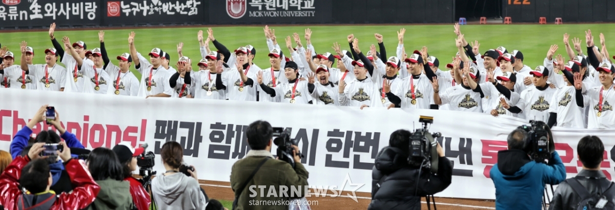 스포츠야구[포토]'홀가분하게 모자 던져요!'발행 : 2025.10.31 ・ 23:10대전=강영조 선임기자LG트윈스가 31일 대전한화생명볼파크에서 열린 2025KBO리그 한화이글스와 LG트윈스의 한국시리즈5차전에서 승리하며 우승을 차지했다. 트윈스 선수들이 LG팬들 앞에서 모자를 던지며 우승인사를 하고 있다. 2025.10.31.<저작권자 © 스타뉴스, 무단전재 및 재배포 금지>트윈스모자대전볼파크한화이글스한국추천 기사강영조 선임기자기자홈좋아요 스포츠-야구의 인기 급상승 뉴스스포츠-야구의 최신 뉴스