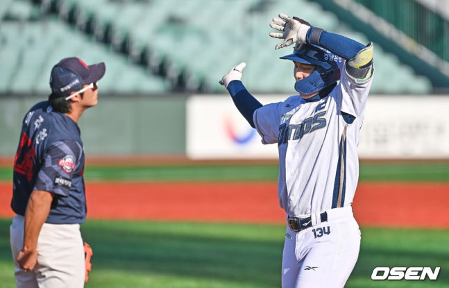 첫 타석부터 신재인의 활약이 시작됐다. NC는 1회말 홍종표의 안타와 고준휘의 볼넷으로 무사 1, 2루를 만들었는데, 여기서 신재인이 우익수 앞 안타로 선취점을 올렸다. 그는 다음 타자 오영수의 우중간 2루타 때 홈까지 들어오며 득점도 올렸다.