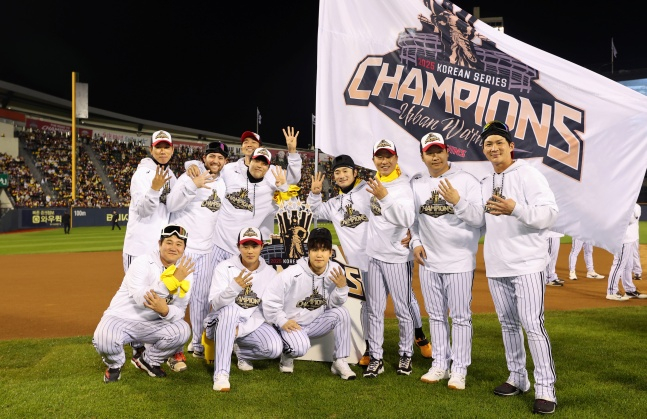 전날 염경엽 감독이 이끄는 LG는 대전 한화생명 볼파크에서 열린 2025 신한 SOL Bank KBO 포스트시즌 한국시리즈(KS·7전4선승제) 5차전에서 한화 이글스를 4-1로 제압하고 시리즈 전적 4승 1패로 정상에 섰다.