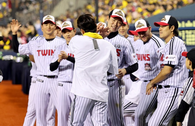 LG는 1일 서울 잠실야구장에서 '한국시리즈 통합우승 IN 잠실' 행사를 개최했다. 10월의 마지막 날 한화 이글스를 4-1로 제압하고 시리즈 전적 4승 1패로 해낸 2025년 한국시리즈 우승을 팬들과 홈구장에서 기념하기 위함이었다.