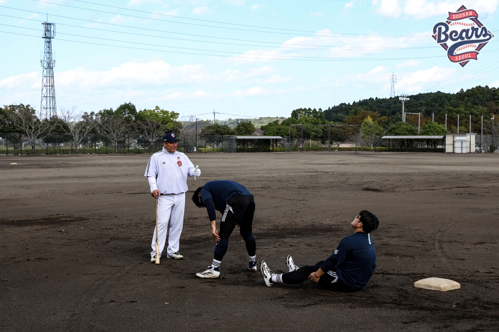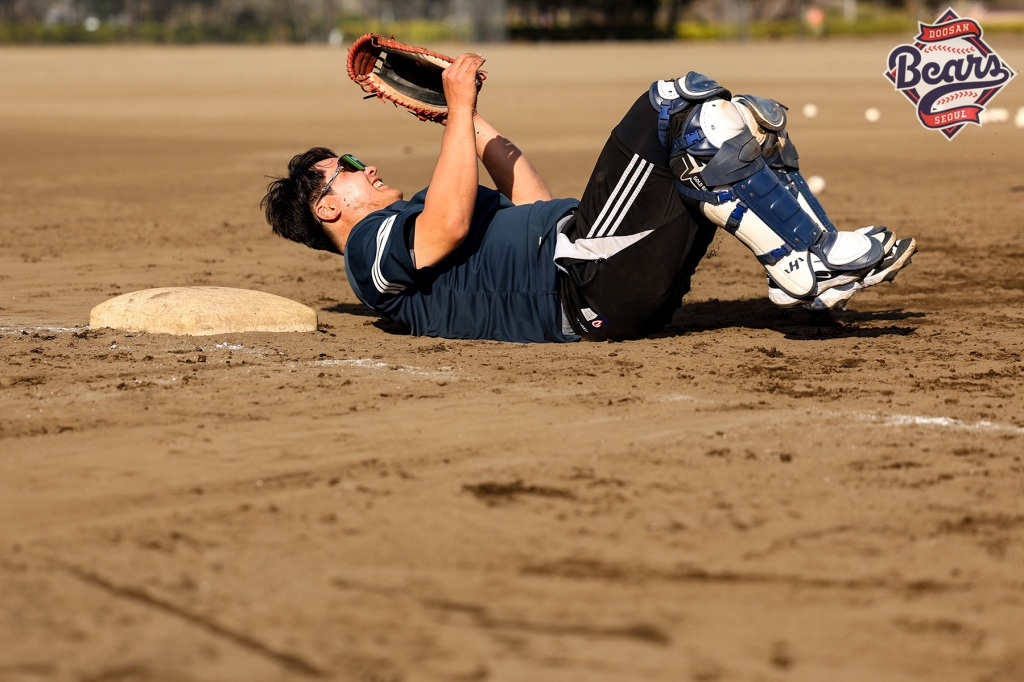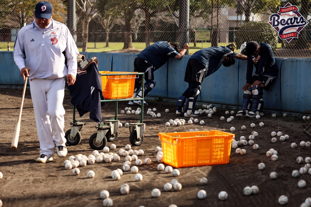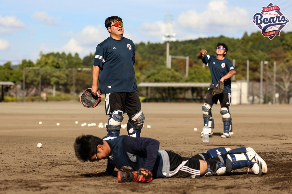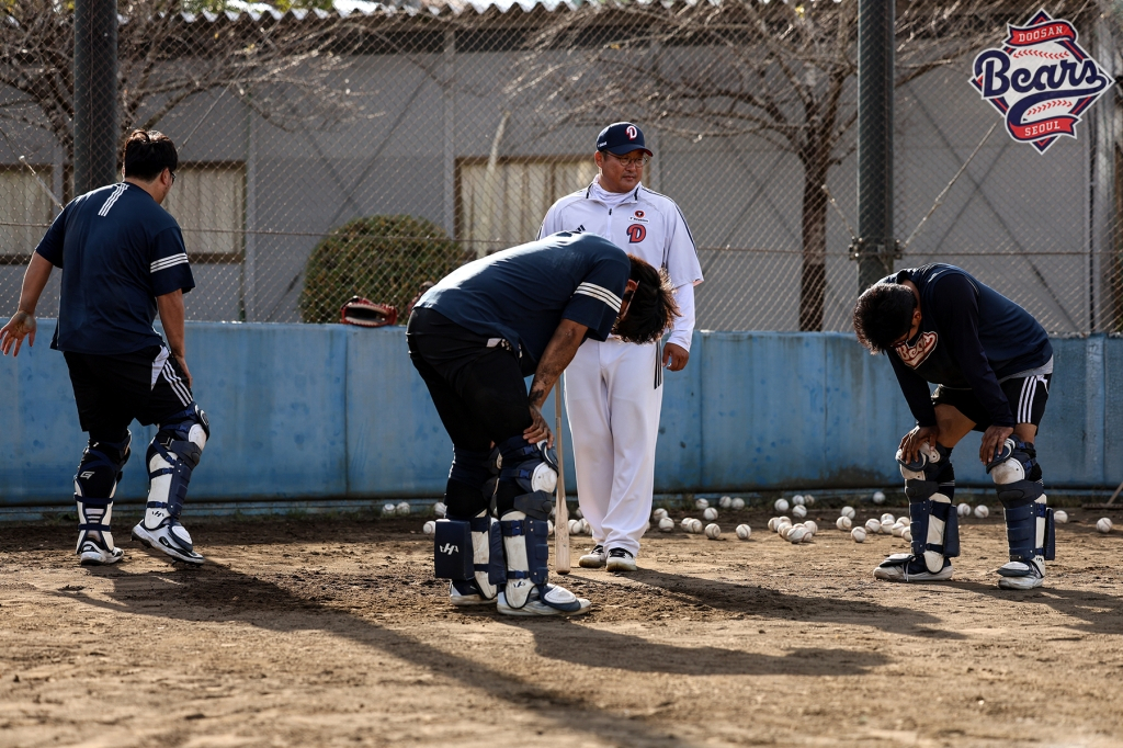 두산의 일본 미야자키 마무리 캠프가 한창이다. 특히 포수조 3명(김기연, 류현준, 김성재)은 '살아있는 레전드 안방마님' 조인성 배터리 코치의 집중 지도 아래 더욱 굵은 땀방울을 뚝뚝 흘리고 있다.