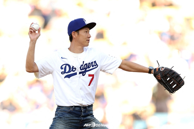 손흥민 역시 다저스와 인연이 있다. 지난 8월 토트넘 홋스퍼를 떠나 LAFC로 이적한 그는 같은 달 28일 다저스의 홈 경기에 시구자로 나섰다. 노바운드로 홈플레이트 뒤에 있던 투수 블레이크 스넬에게 던져 박수갈채를 받았다. 이때 부상으로 만나지 못했던 코리안리거 김혜성은 9월 22일 스넬과 LAFC 경기에 방문해 손흥민과 기념촬영을 했다.