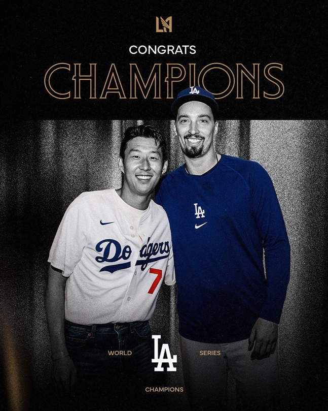 LAFC는 다저스의 월드시리즈 우승 후 공식 SNS에 축하 이미지를 올렸는데, 여기에는 손흥민과 스넬이 같이 찍은 사진이 사용됐다. 그러자 스넬도 자신의 SNS에 이를 공유했다.