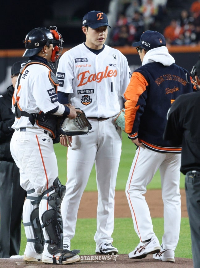 플레이오프에서 1승 1홀드, 불펜으로 6이닝을 완벽히 틀어막고 시리즈 최우수선수(MVP)를 거머쥐었던 문동주(22·한화 이글스)는 한국시리즈에서 급격하게 떨어진 구속과 함께 고전했다. 이젠 그 걱정을 대표팀이 넘겨 받았다.