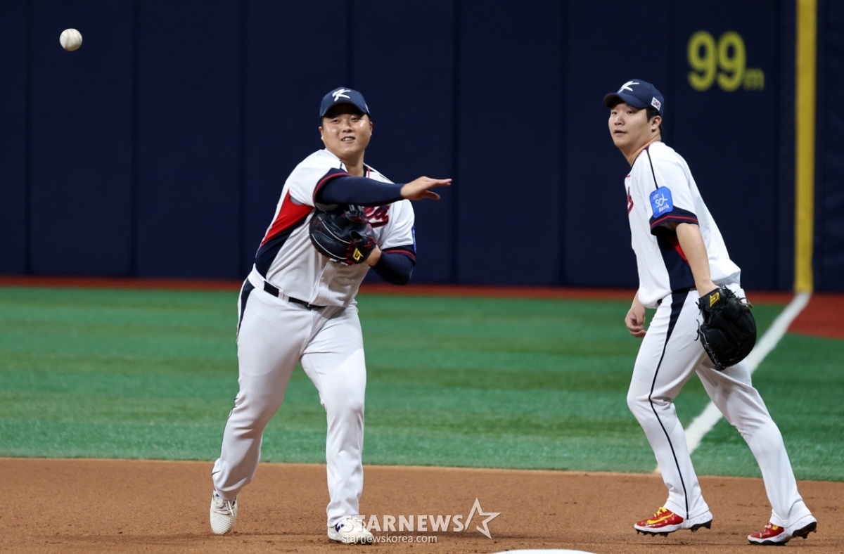 스포츠야구[포토] '1루주인은?' 한동희와 문보경발행 : 2025.11.04 ・ 15:39고척=강영조 선임기자야구대표팀 한동희와 문보경이 4일 고척스카이돔에서 열린 2026 WBC 야구대표팀 훈련에서 몸풀기를 마치고 수비훈련을 하고 있다. 2025.11.04.야구대표팀 한동희와 문보경이 4일 고척스카이돔에서 열린 2026 WBC 야구대표팀 훈련에서 몸풀기를 마치고 수비훈련을 하고 있다. 2025.11.04.<저작권자 © 스타뉴스, 무단전재 및 재배포 금지>한동희문보경고척스카이포토주인추천 기사강영조 선임기자기자홈좋아요 스포츠-야구의 인기 급상승 뉴스스포츠-야구의 최신 뉴스