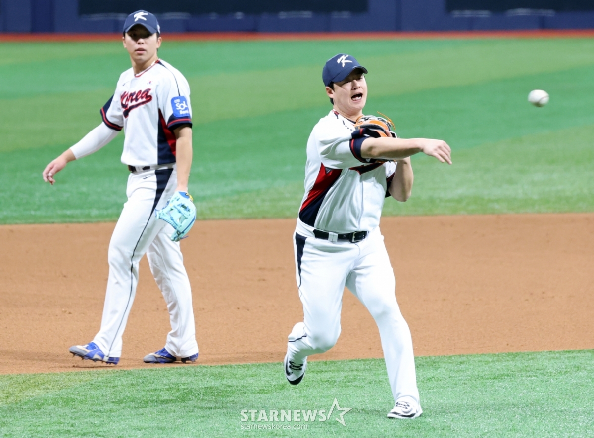 스포츠야구[한번에쓱]김영웅과 치열한 경쟁 그래도 '3루주인은 나야!' 노시환발행 : 2025.11.07 ・ 15:13수정 : 2025.11.07 ・ 15:14고척=강영조 선임기자내야수 노시환이 7일 고척스카이돔에서 열린 2026 WBC 야구대표팀 훈련에서 김영웅과 3루수비훈련을 하고 있다. 2025.11.07.내야수 노시환이 7일 고척스카이돔에서 열린 2026 WBC 야구대표팀 훈련에서 김영웅과 3루수비훈련을 하고 있다. 2025.11.07.<저작권자 © 스타뉴스, 무단전재 및 재배포 금지>김영웅고척스카이시환치열경쟁추천 기사강영조 선임기자기자홈좋아요 스포츠-야구의 인기 급상승 뉴스스포츠-야구의 최신 뉴스