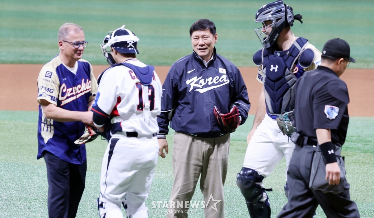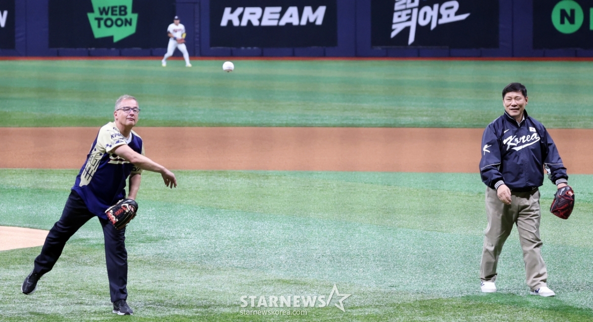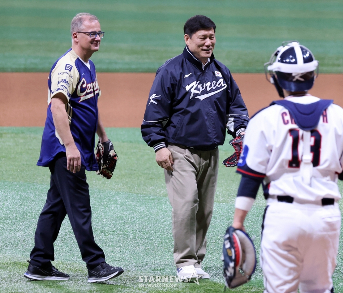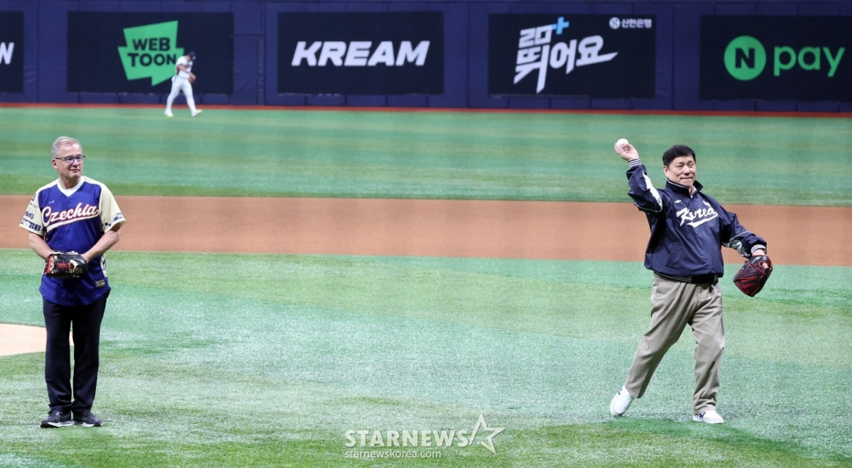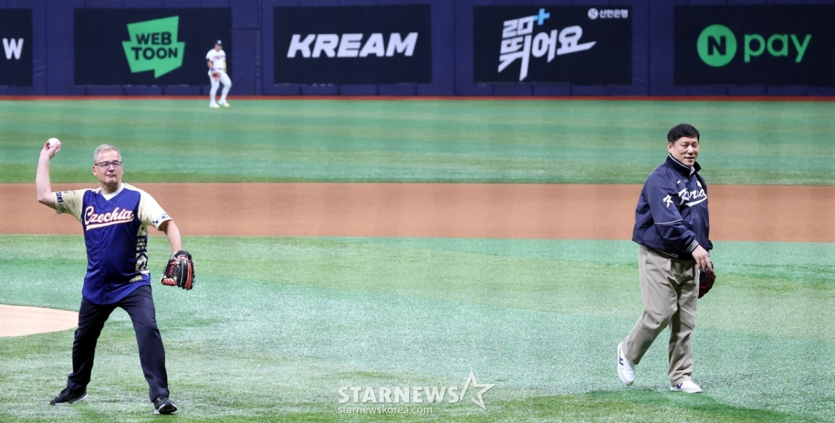 스포츠야구[포토]시구나선 허구연 총재와 이반 얀차렉 주한체코대사발행 : 2025.11.08 ・ 14:26고척=강영조 선임기자허구연 KBO 총재와 이반 얀차렉 주한체코대사가 8일 오후 서울 고척스카이돔에서 열리는 ‘2025 NAVER K-BASEBALL SERIES’ 한국과 체코의 평가전에서 시구를 하고 있다. 2025.11.08.<저작권자 © 스타뉴스, 무단전재 및 재배포 금지>체코허구연이반총재주한대사추천 기사강영조 선임기자기자홈좋아요 스포츠-야구의 인기 급상승 뉴스스포츠-야구의 최신 뉴스