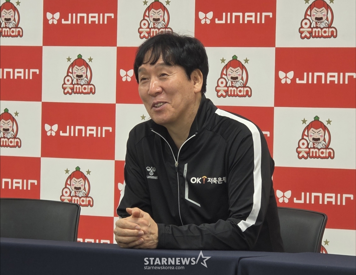 신영철 감독은 9일 오후 2시 부산강서실내체육관에서 열리는 진에어 2025~2026 프로배구 V-리그 남자부 대한항공전을 앞두고 취재진과 만나 "부담이 많이 있다"며 웃었다.